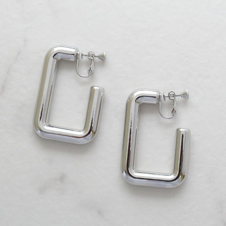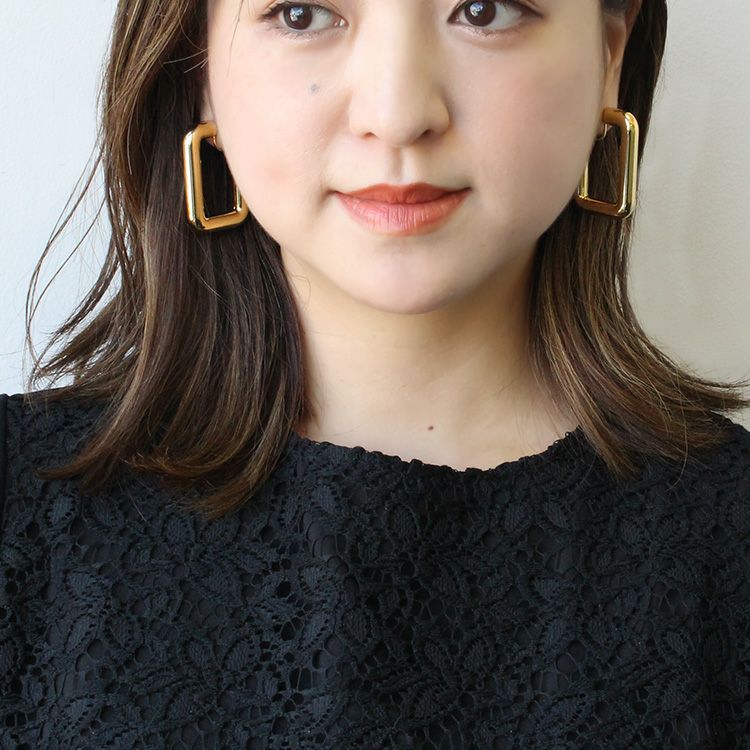 レクタングルデザインメタルフープイヤリング【VERY/GISELe 掲載】