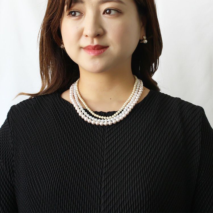 マジョルカパールマルチカラー三連ショートネックレス