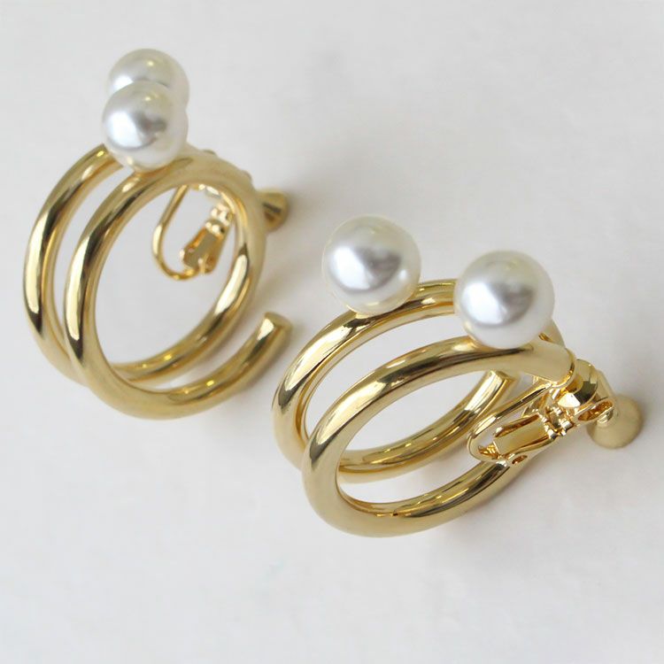 パール×メタルスパイラルデザインイヤリング/3240020【美ST 掲載】