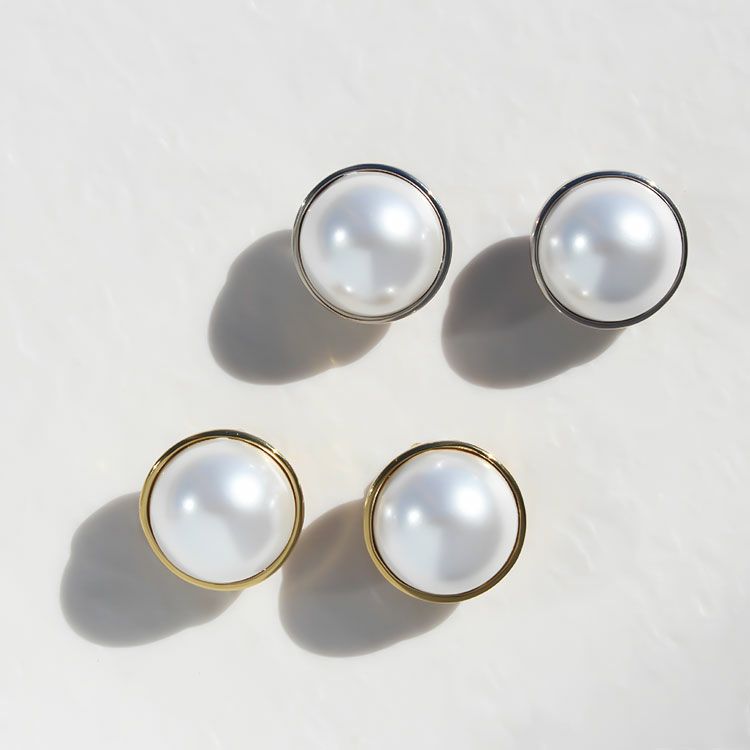 ハーフパール×メタルイヤリング【素敵なあの人 掲載】