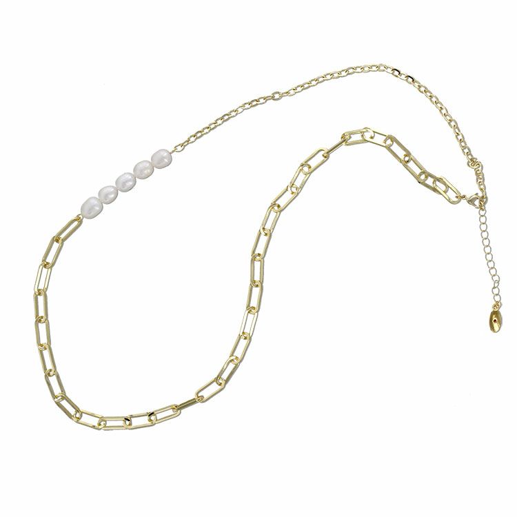 パールメタルチェーンネックレス