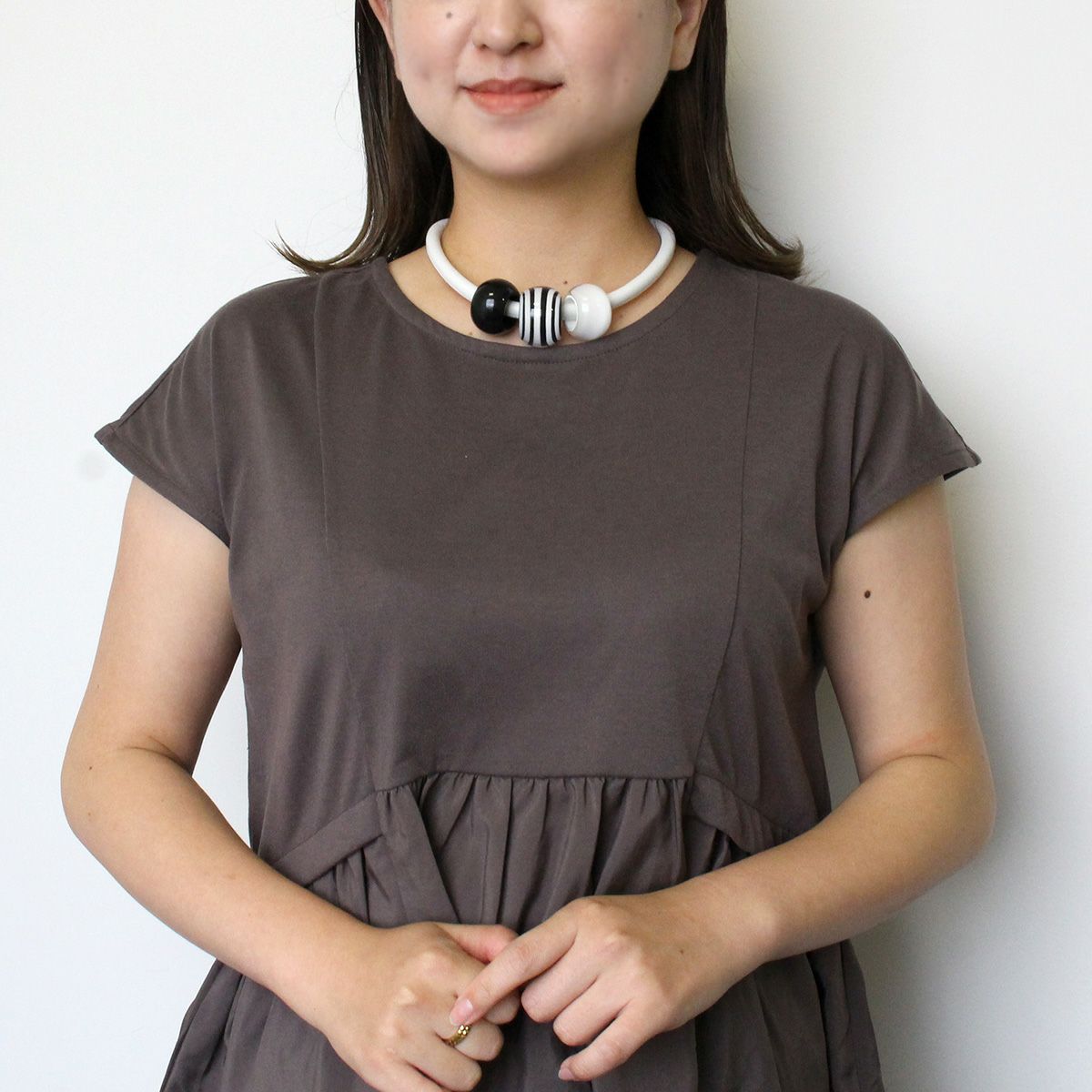ハウライト×ブラックリップシェル3連ショートネックレス/1181341