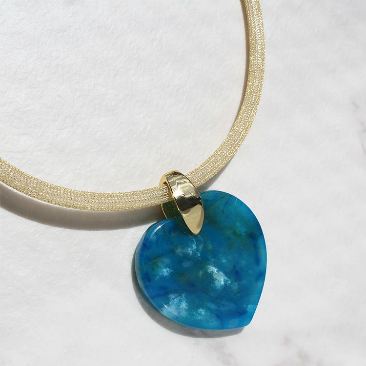 ハートシェイプジェムストーンメッシュコードネックレス/1240218G