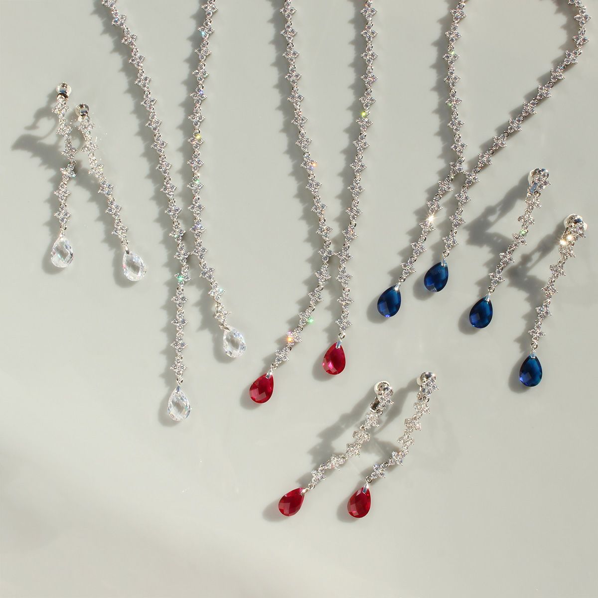 ラリエット調キュービックジルコニアネックレス・イヤリングセット