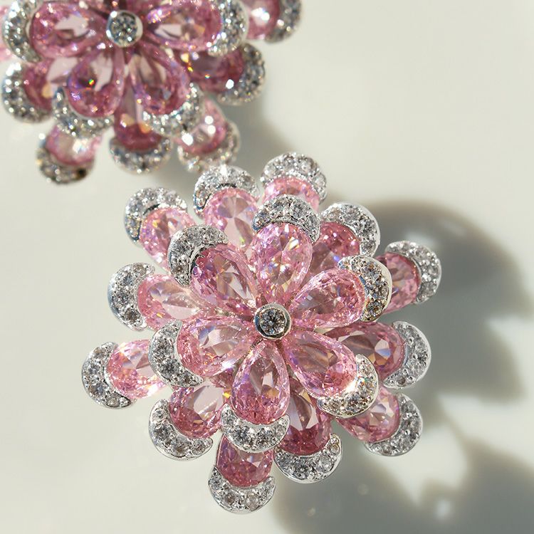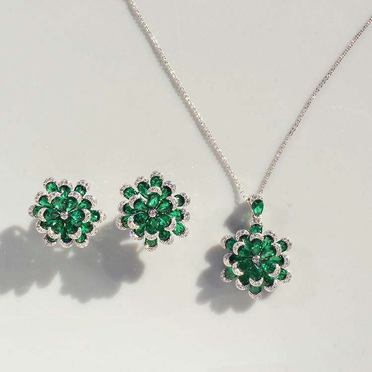 フラワーモチーフキュービックジルコニアネックレス・イヤリングセット