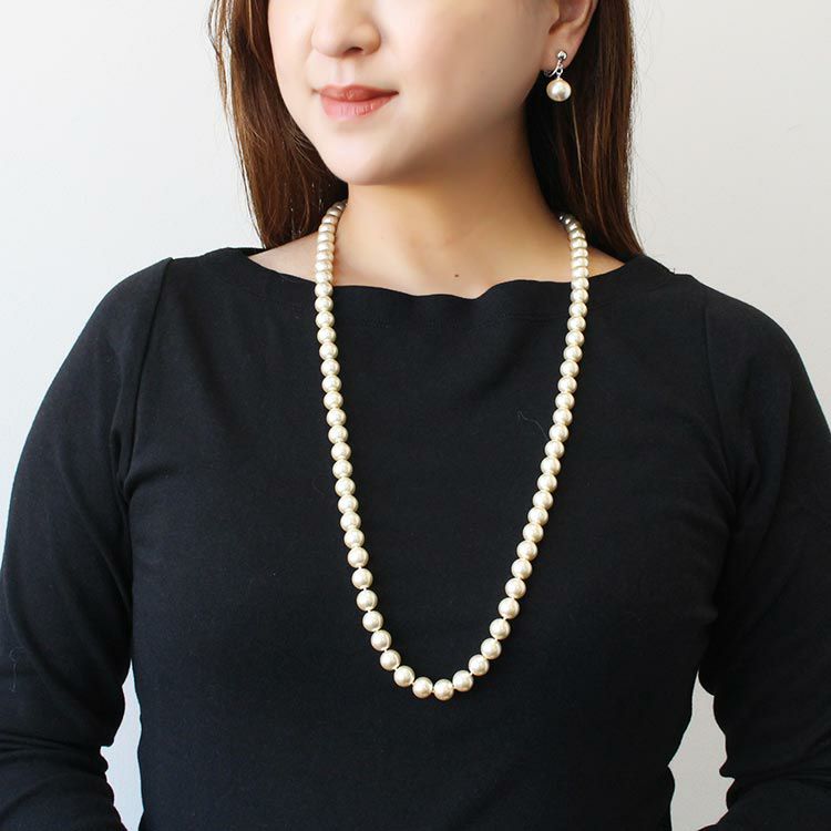 10mm玉ガラスパールロングネックレス