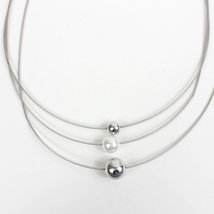 メタルボール×パール3連ショートネックレス