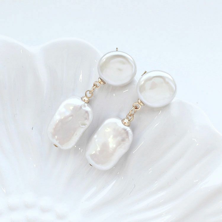 ハーフパール×メタルイヤリング【素敵なあの人 掲載】