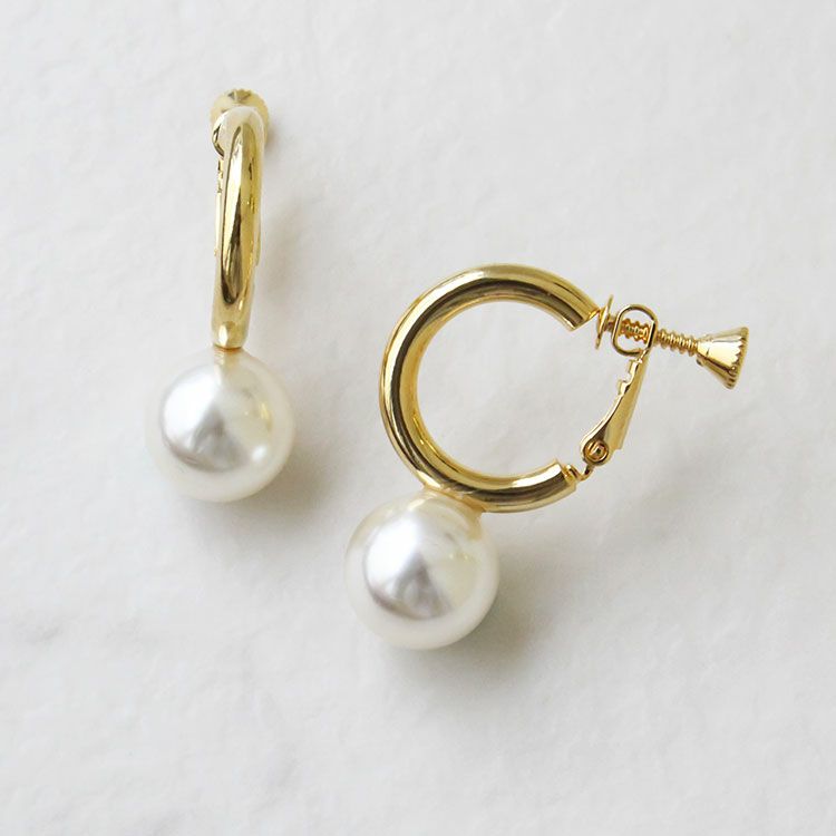パール×メタルスパイラルデザインイヤリング/3240020【美ST 掲載】