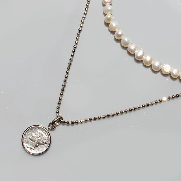 アメリカ10セントマーキュリーダイムコイン×淡水パール3wayネックレス【Oggi 掲載】