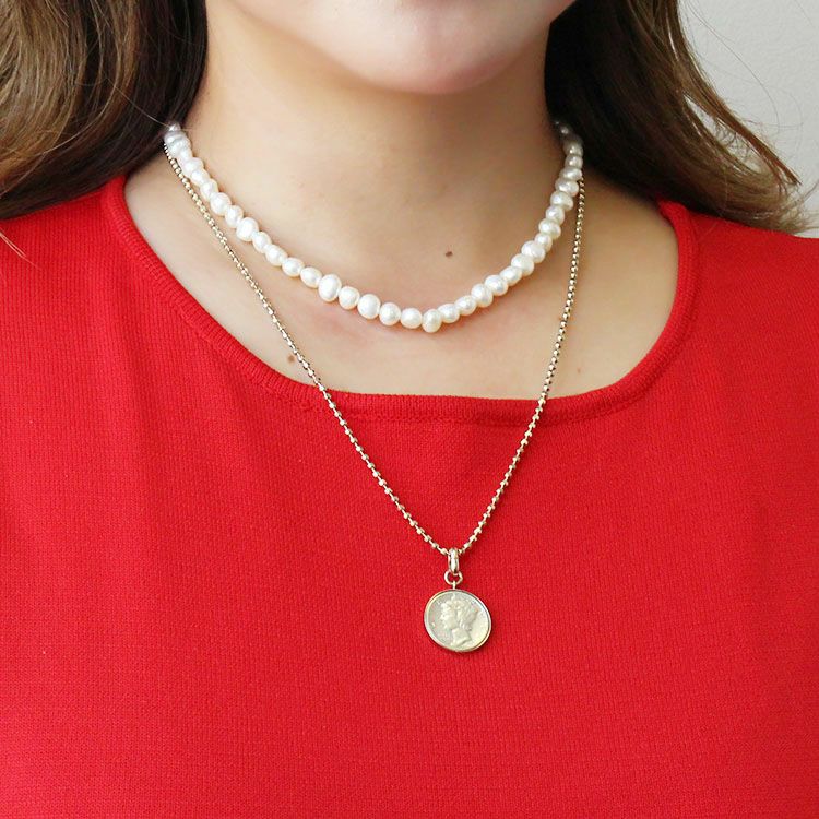 アメリカ10セントマーキュリーダイムコイン×淡水パールロングネックレス