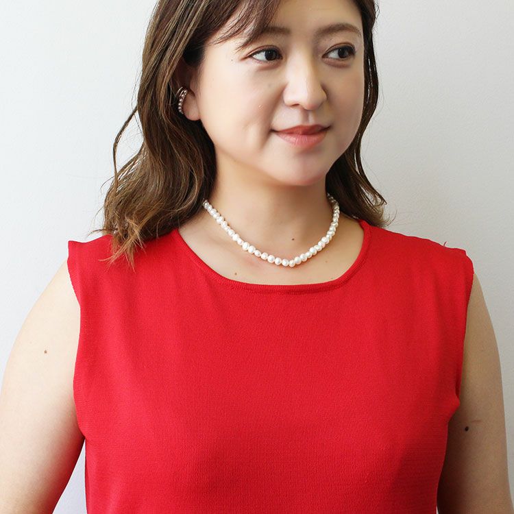 日本製コットンパールショートネックレス