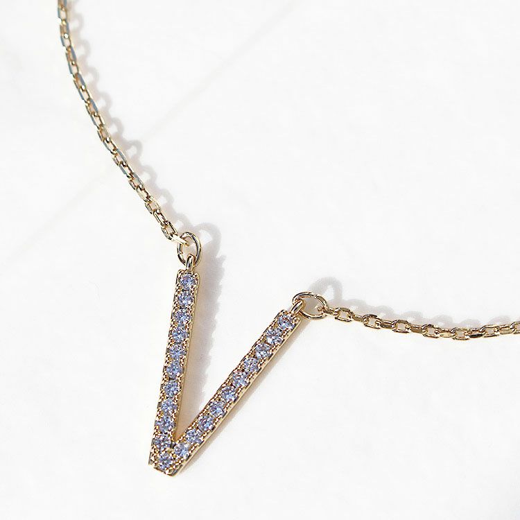 キュービックジルコニアV字デザインネックレス