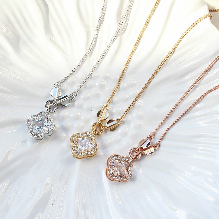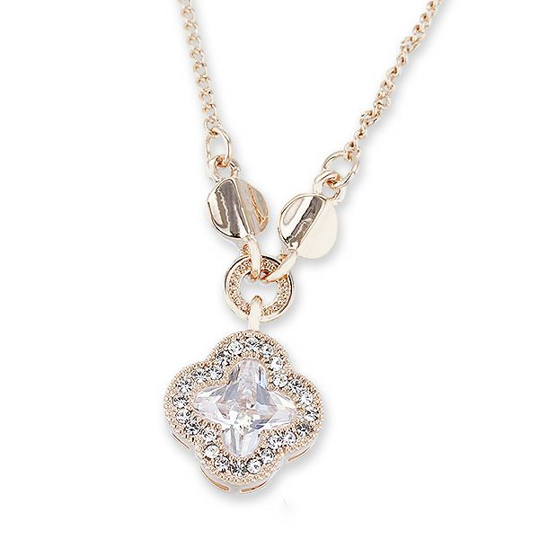 キュービックジルコニアフラワーモチーフデザインネックレス