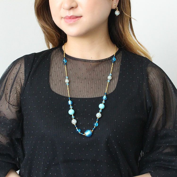 ベネチアンガラスデザインロングネックレス