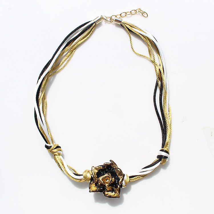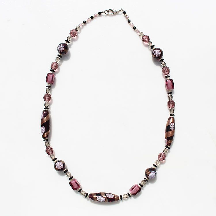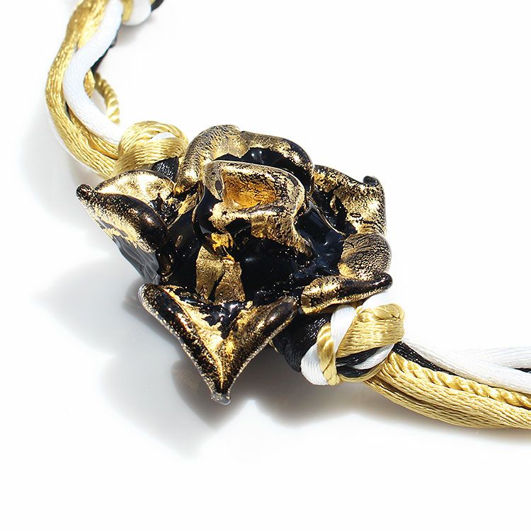 ベネチアンガラスオロロットローズモチーフショートネックレス