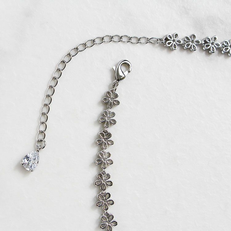 フラワーキュービックジルコニア×パールネックレス・イヤリングセット