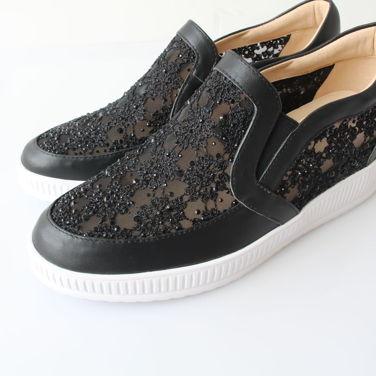チュールレースレザースリッポン