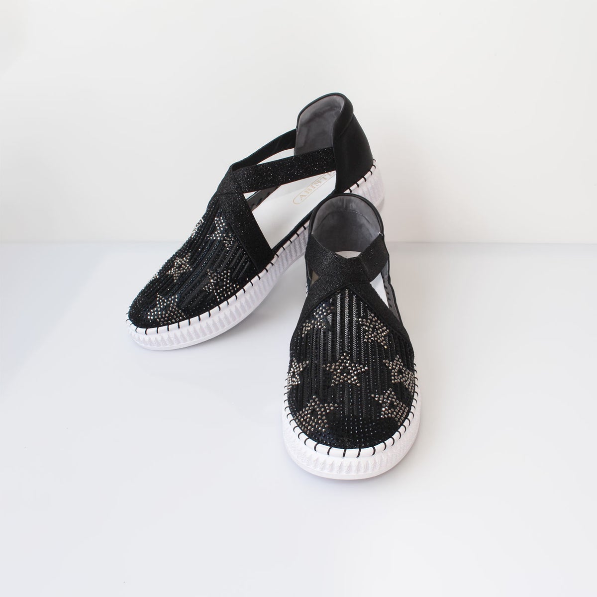 スターモチーフチュールレースレザースリッポン