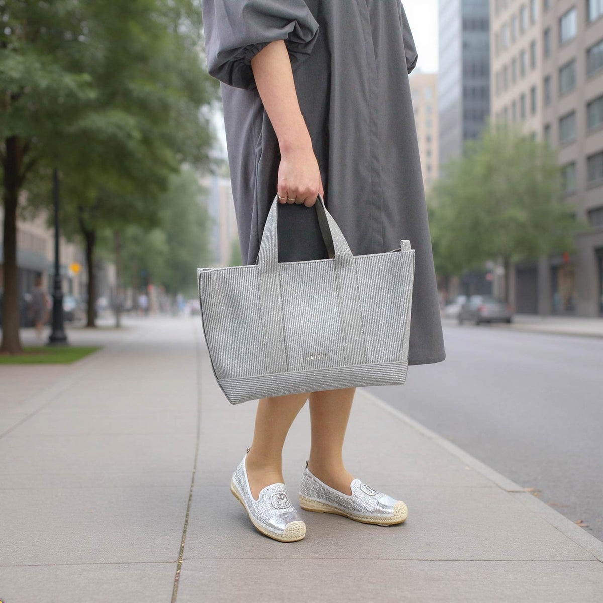 ショルダーストラップ付きラメニットトートバッグ(ラージ)