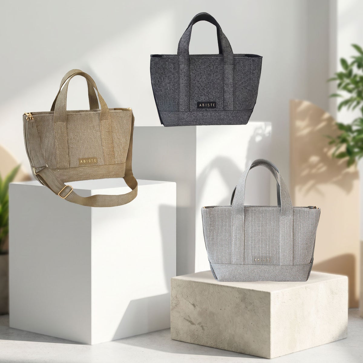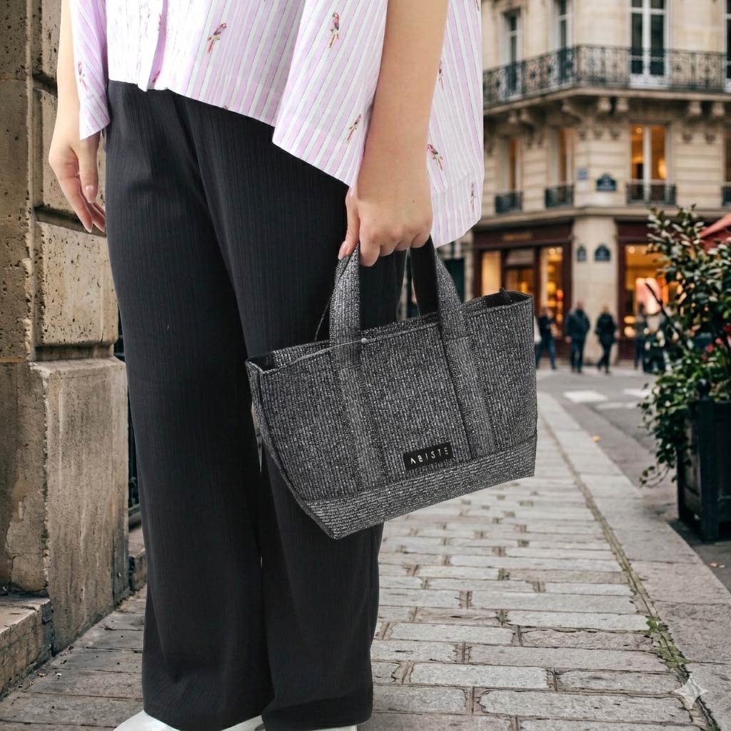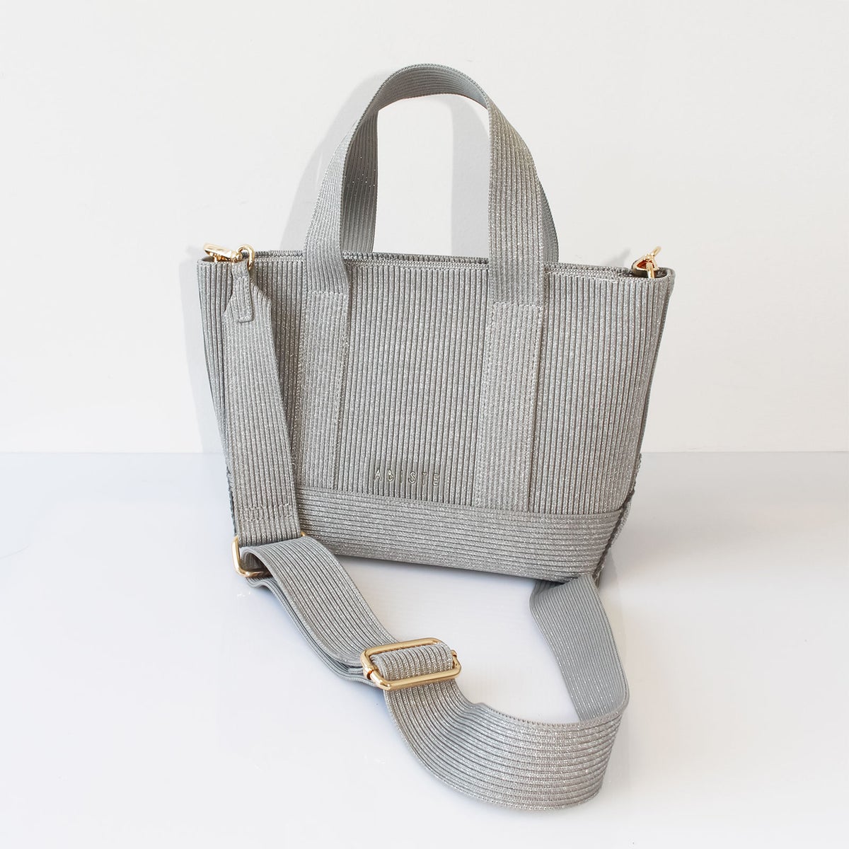 ショルダーストラップ付きラメニットトートバッグ(スモール)