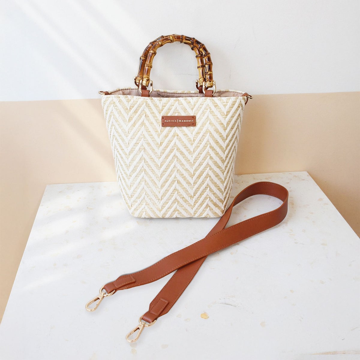 バンブーハンドルバケットトートバッグ