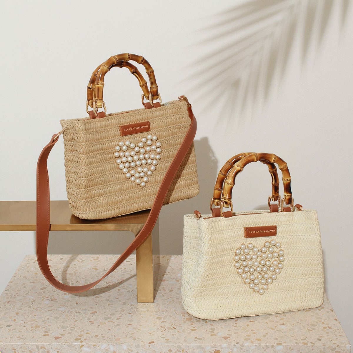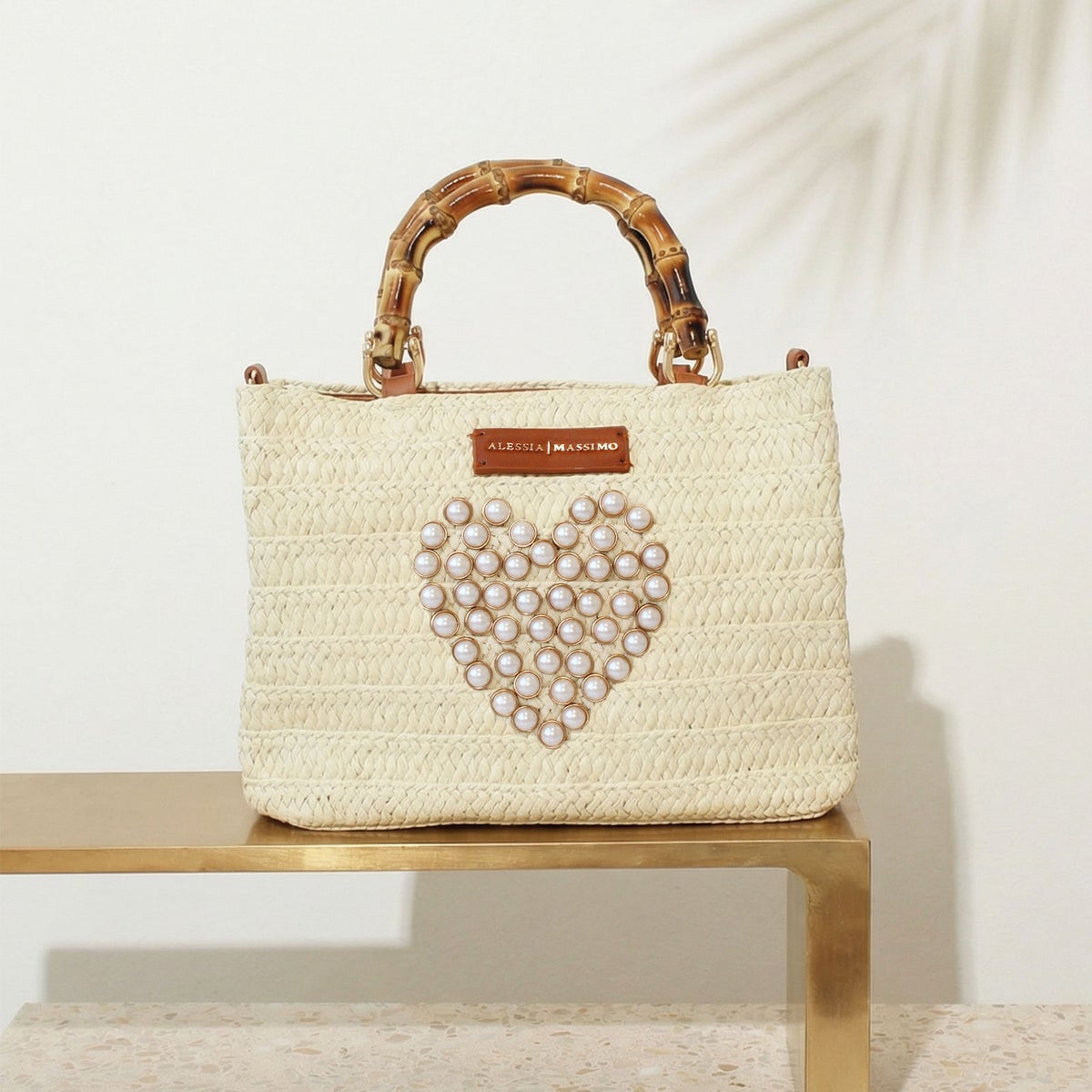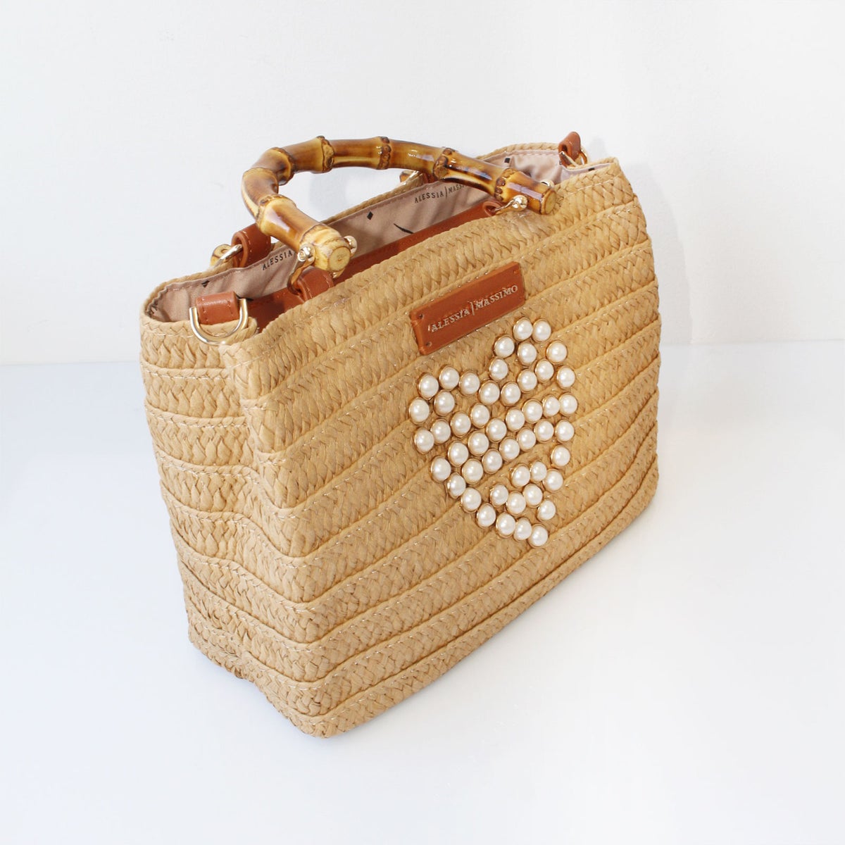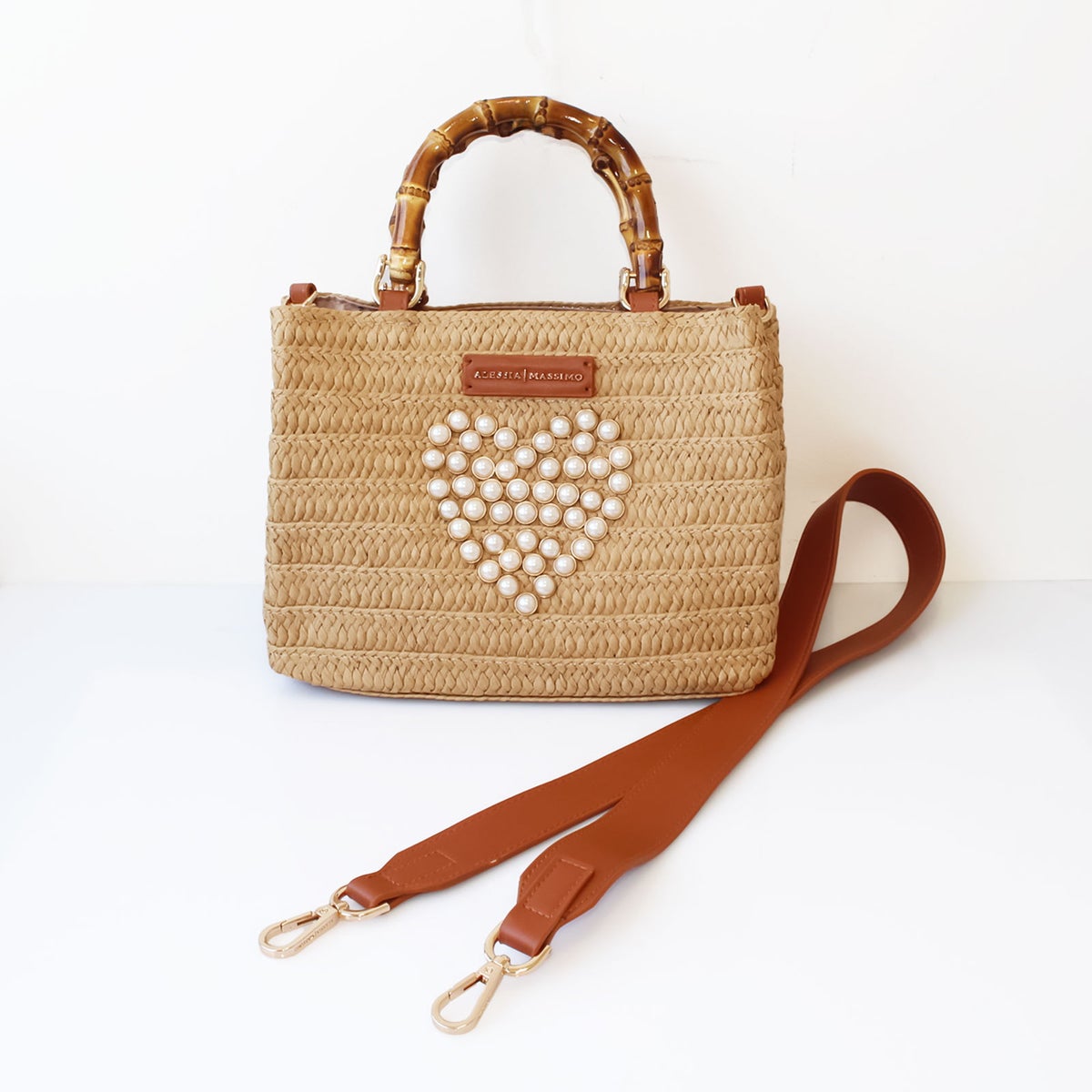 ハートモチーフバンブーハンドルかごバッグ