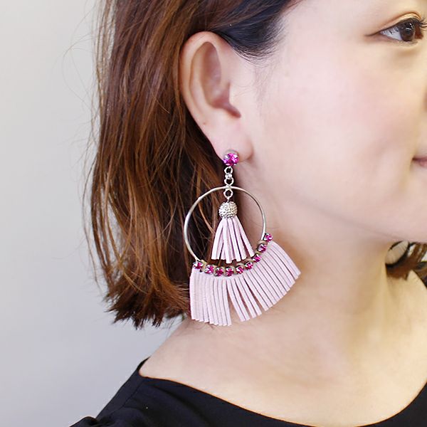 《ニッケルフリー》イタリア製レザー調フリンジロングピアス/3171131(1点限り)