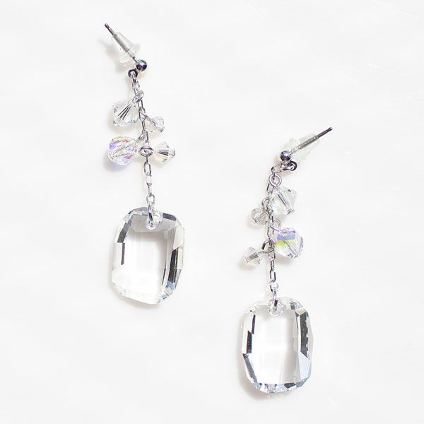 クリスタルガラススクエアロングピアス