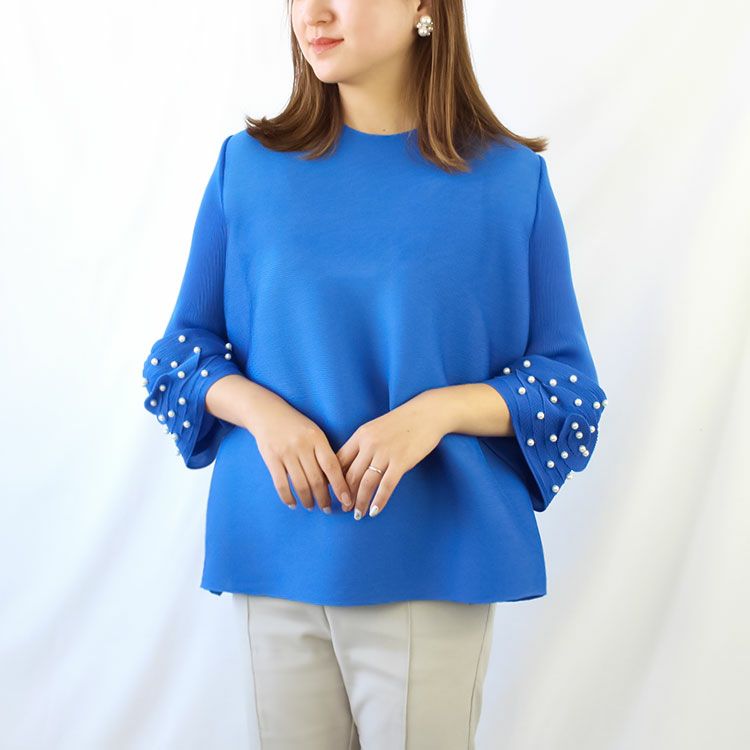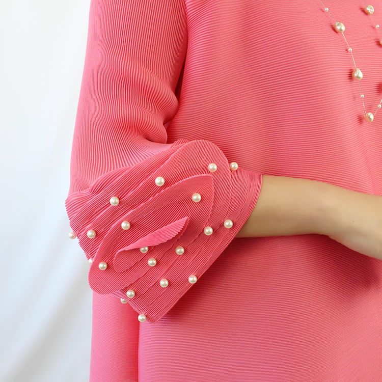 裾レースフレンチスリーブプリーツワンピース(アンサンブル可能)