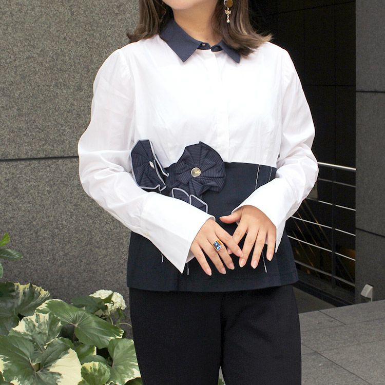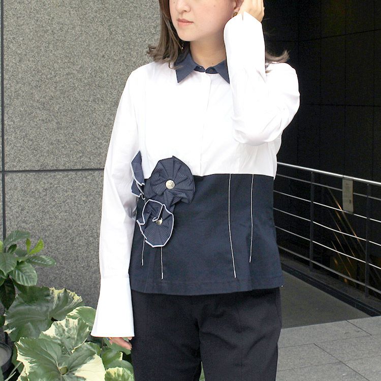 フランス製フラワーモチーフシャツ(家庭洗濯可)/2119189-