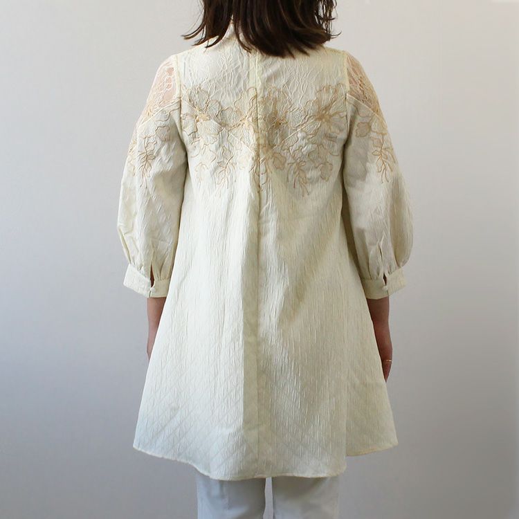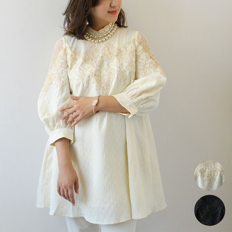 綿100%フラワー刺繍Aラインシャツ(家庭洗濯可)/2119091-