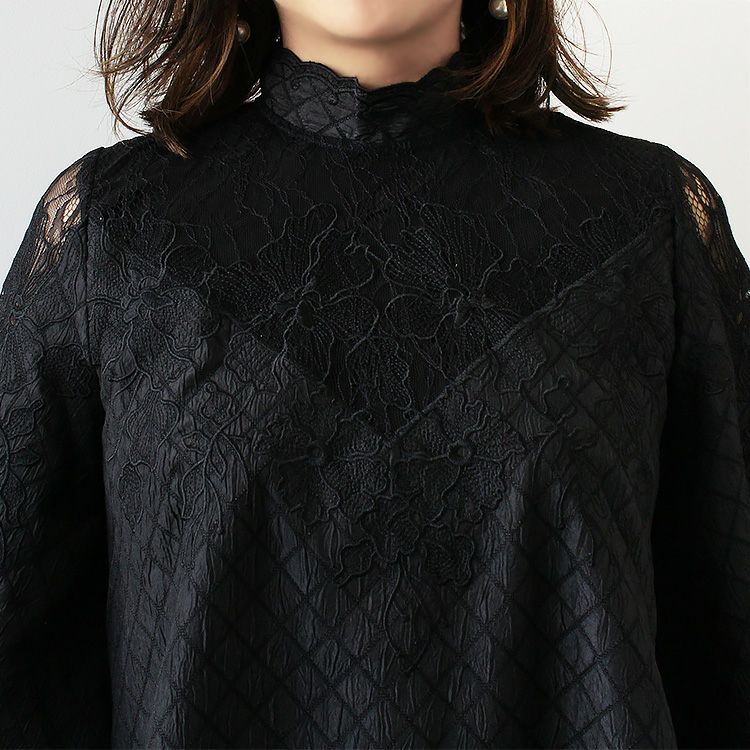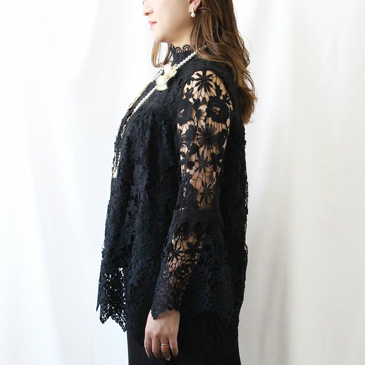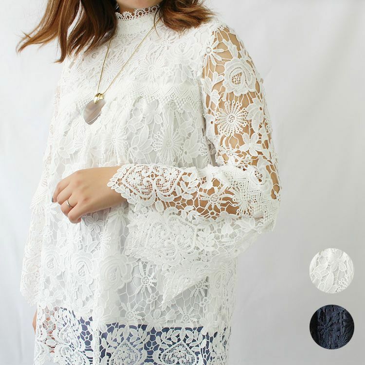 スタンドカラー総レースフレアスリーブトップス/2214528