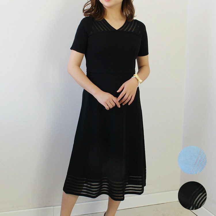 シアー切り替えVネックニットワンピース/2214009