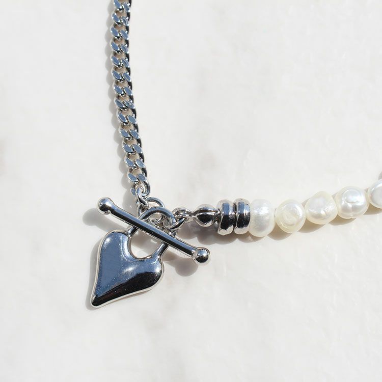 淡水パール×チェーン×ハートペンダント3連ショートネックレス/1240209
