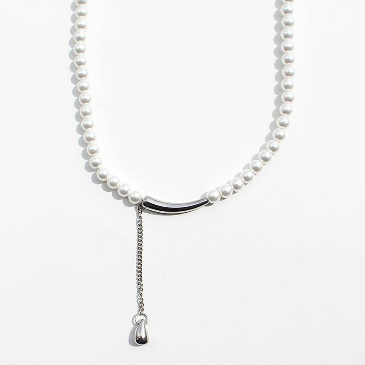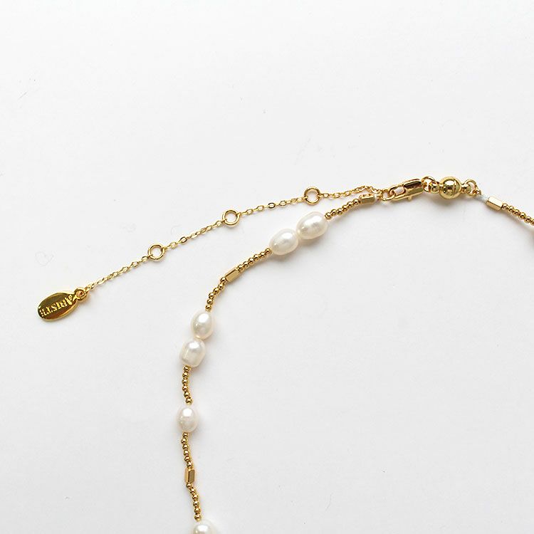 変形メタルバー×パールアシンメトリーショートネックレス