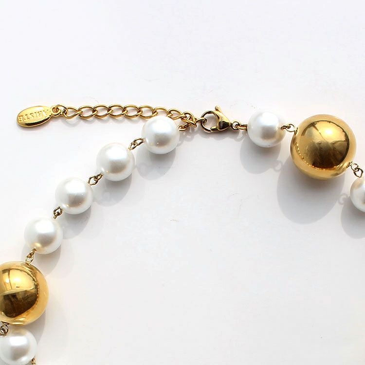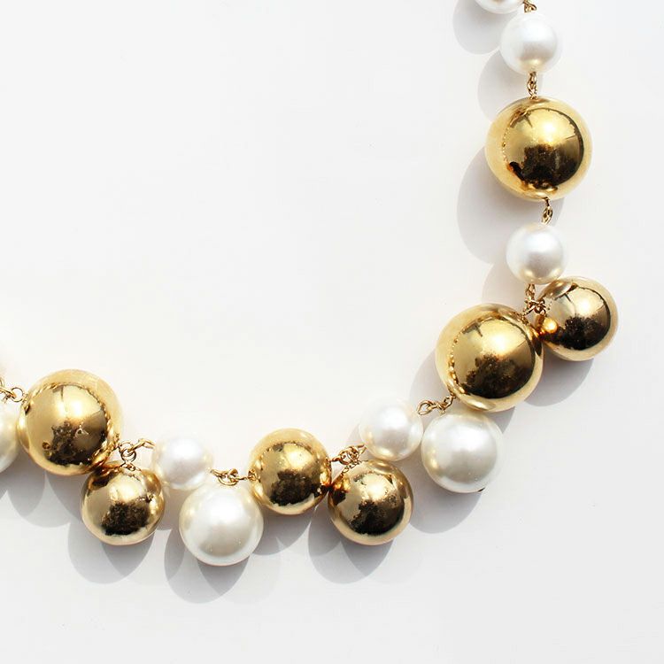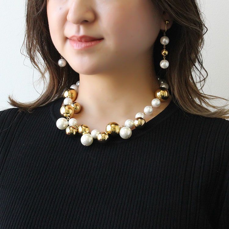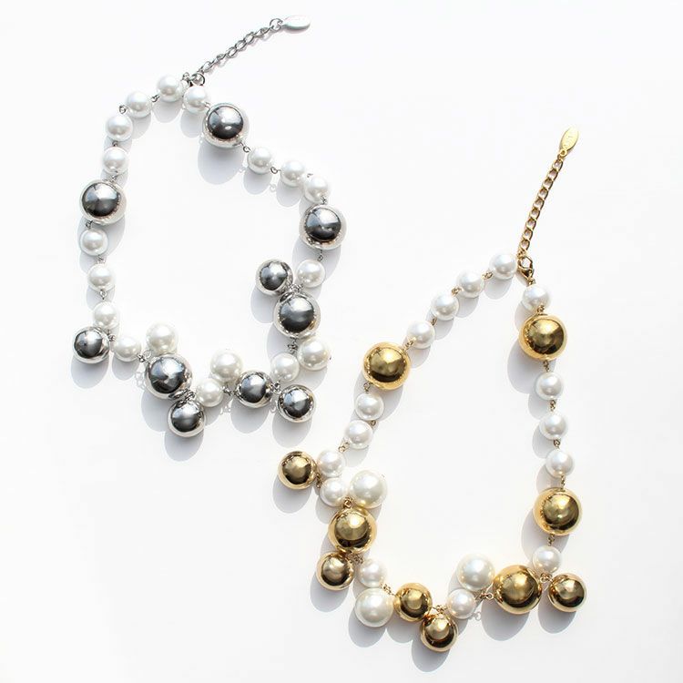 パールボール×メタルボールショートネックレス