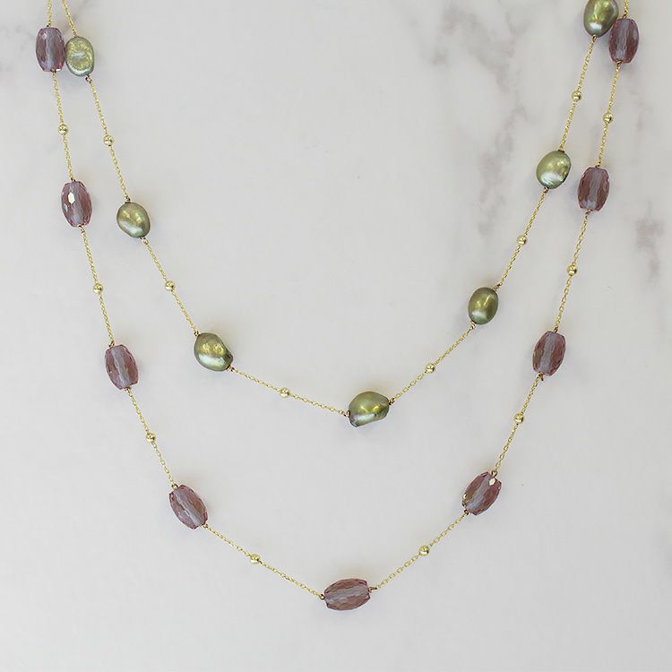 レイヤードデザイン淡水パールロングネックレス/1230037-