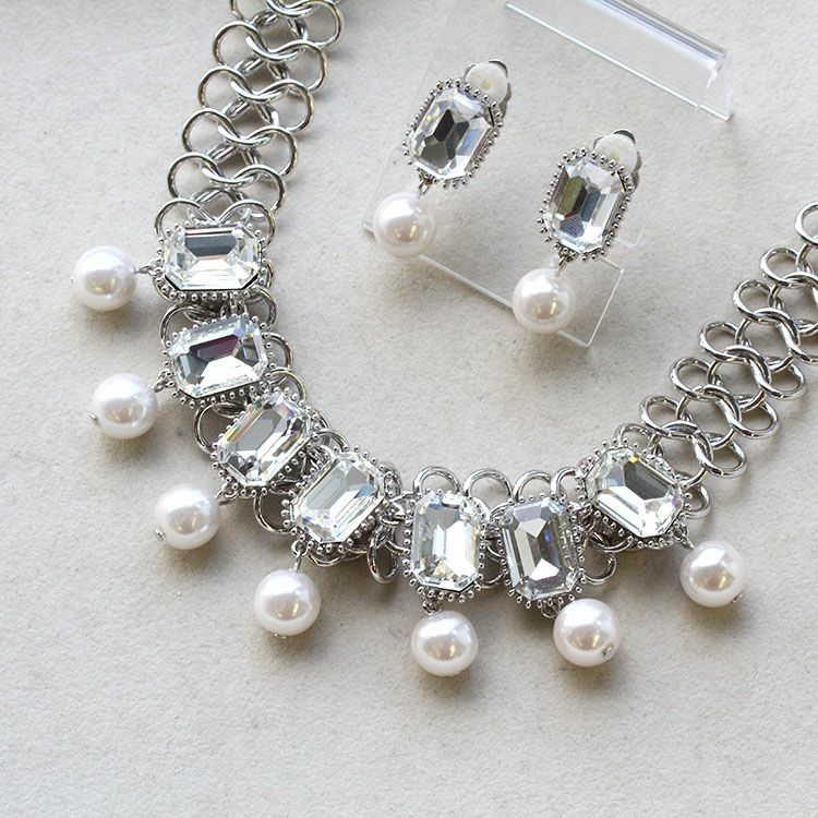 ビジュー×パールショートネックレス・イヤリングセット/1401062-2