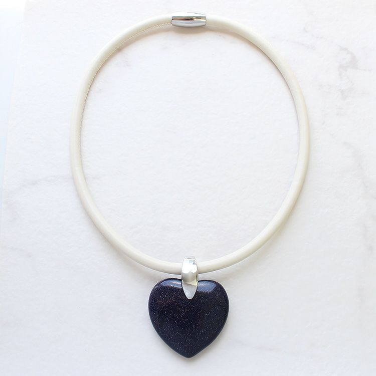 ハートシェイプジェムストーンレザーライクコードネックレス/1240082-