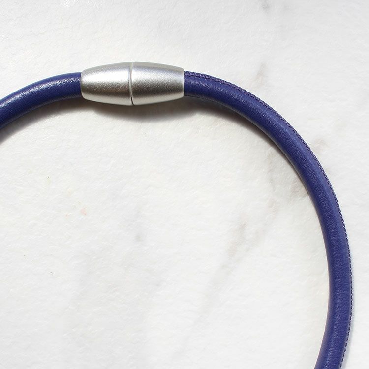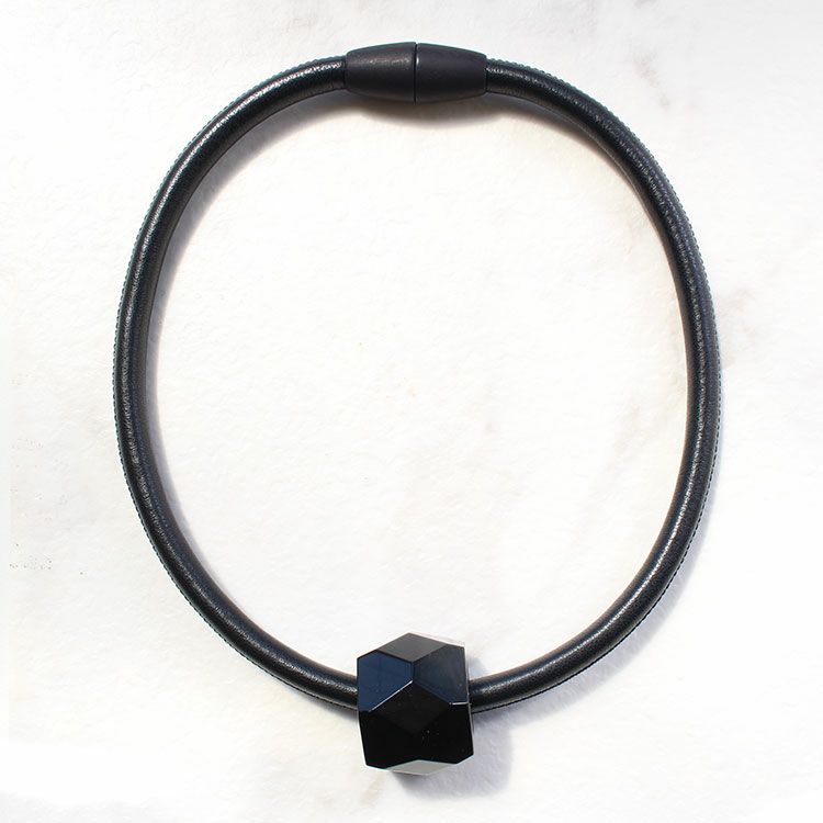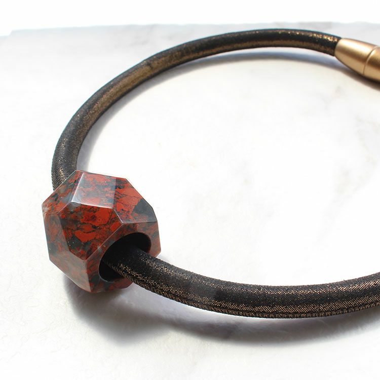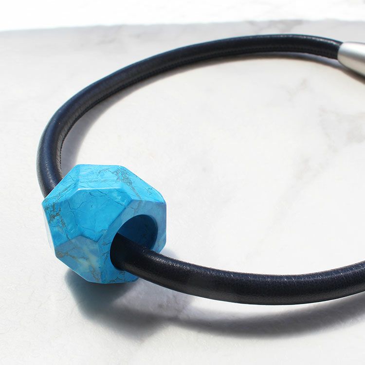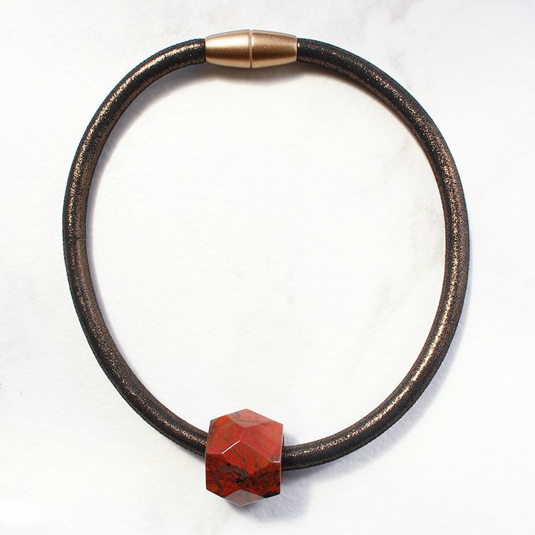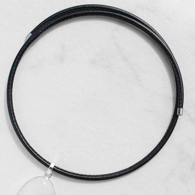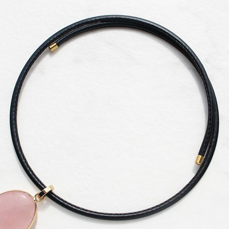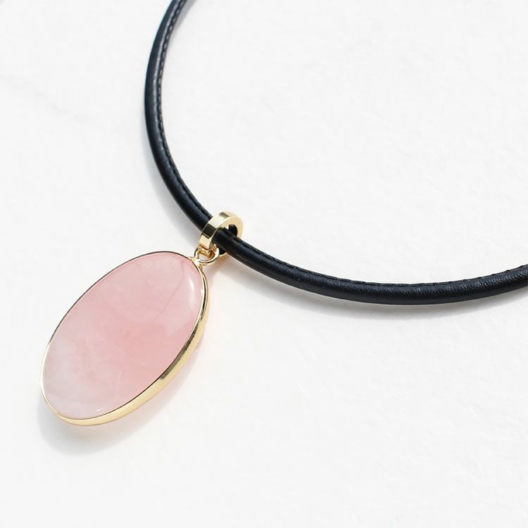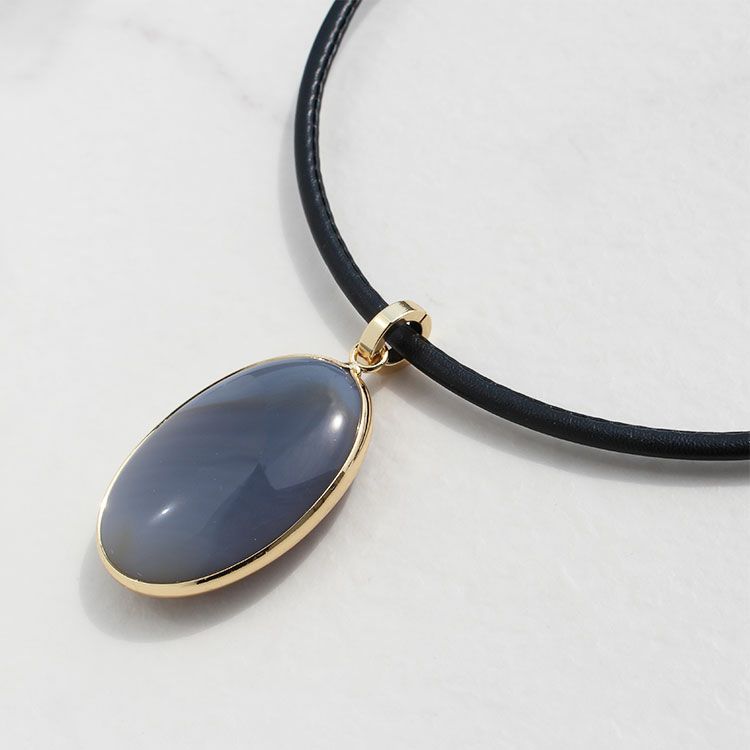 オーバルシェイプジェムストーンレザーコードネックレス