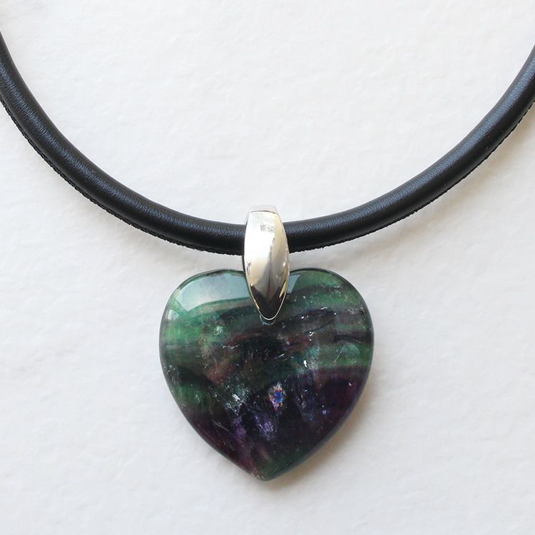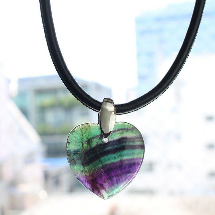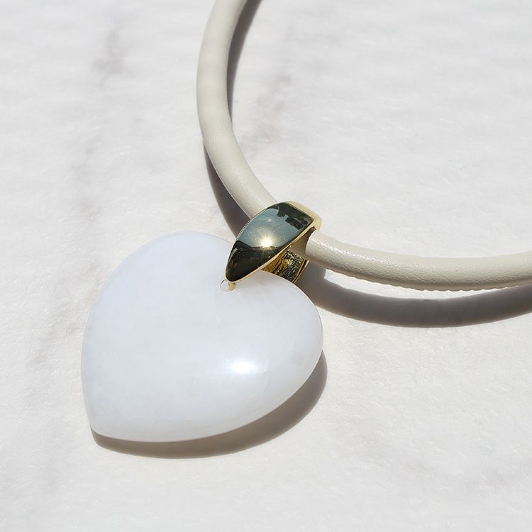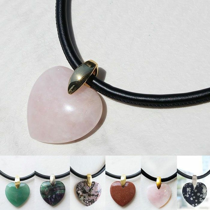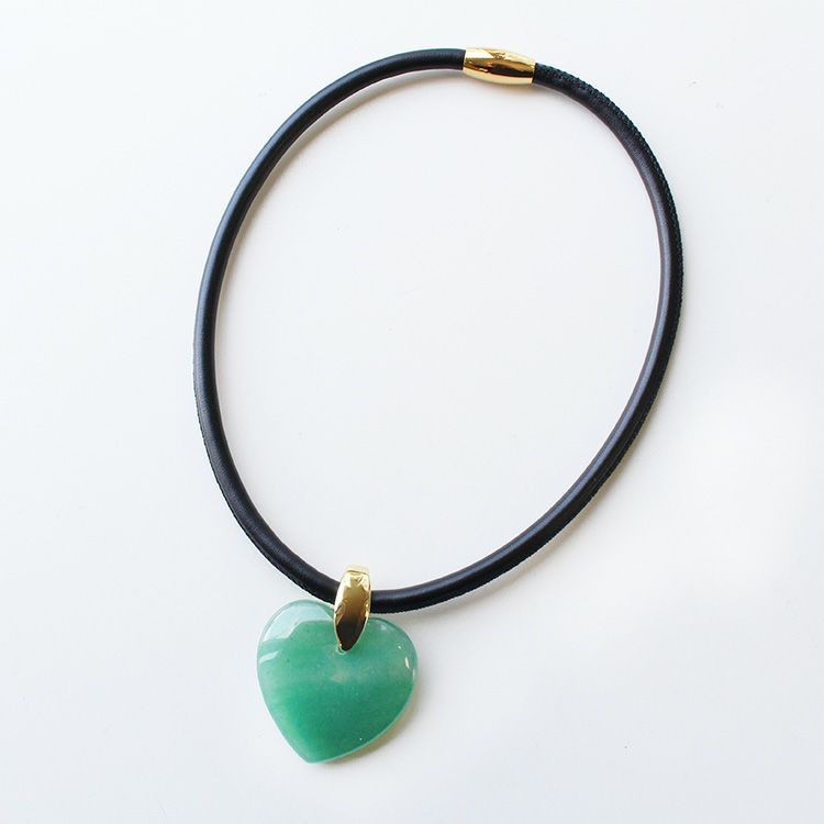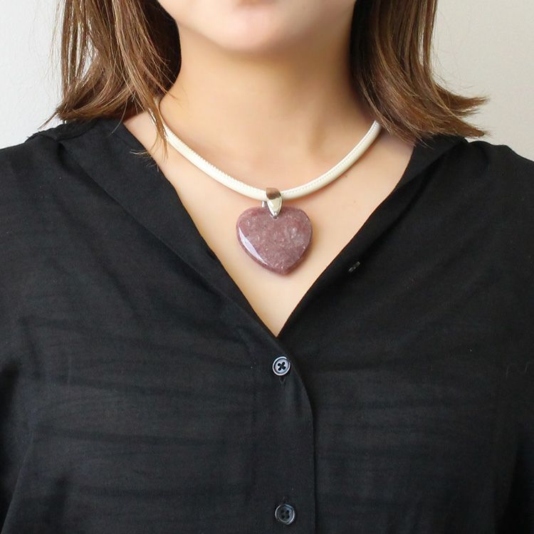ハートシェイプジェムストーンレザーライクコードネックレス/1240082-