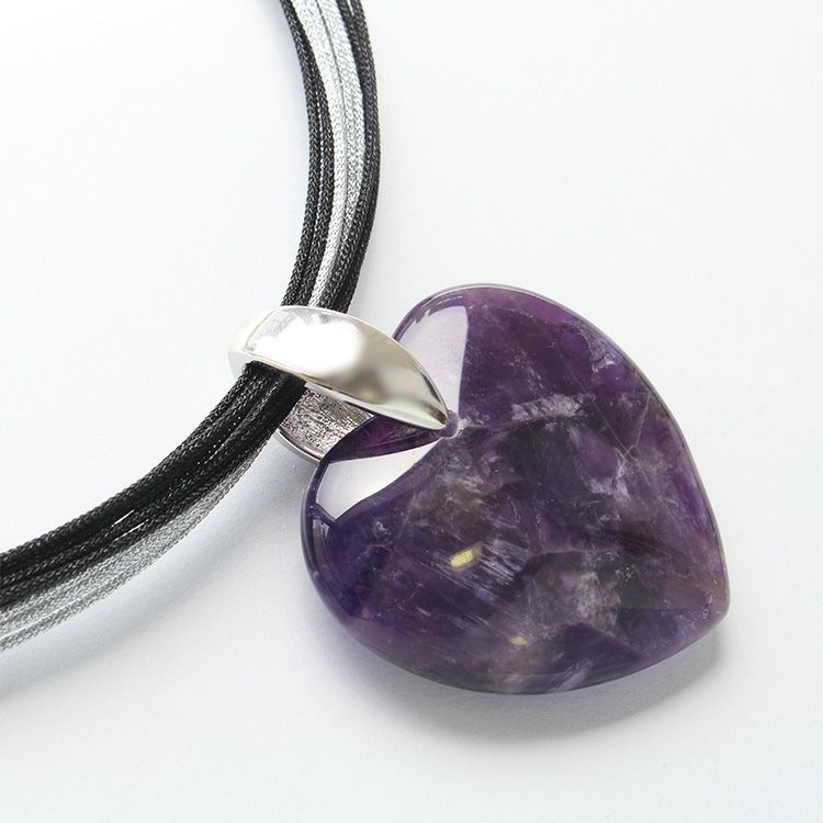 ハートシェイプジェムストーンレザーライクコードネックレス/1240083-