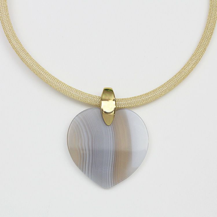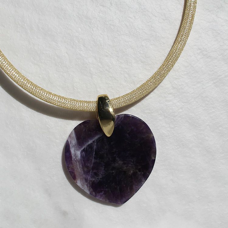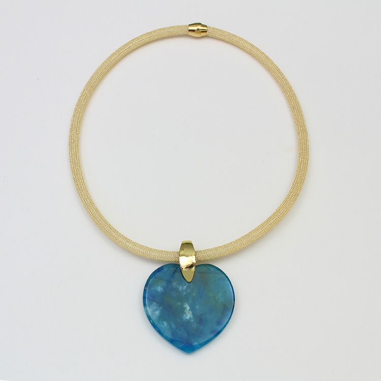 ハートシェイプジェムストーンメッシュコードネックレス/1240218G