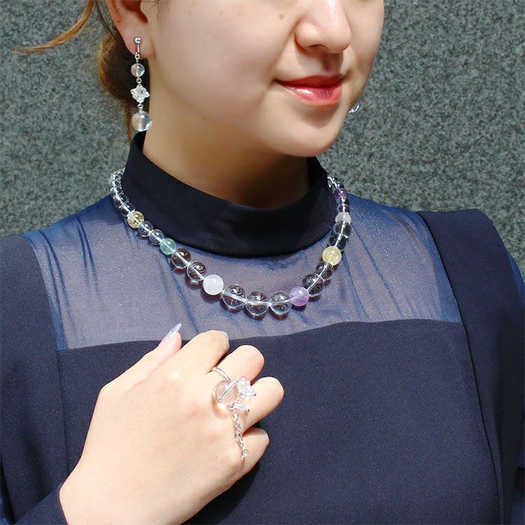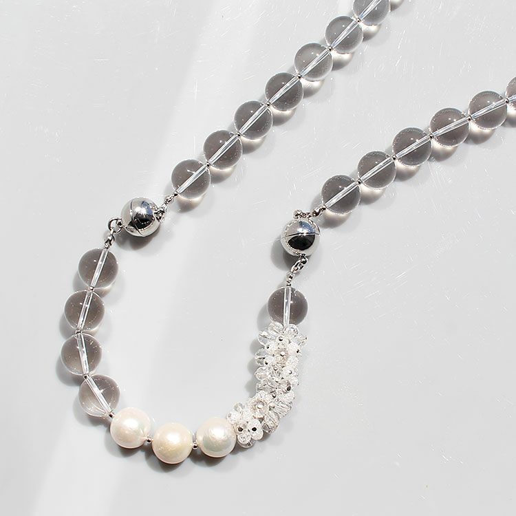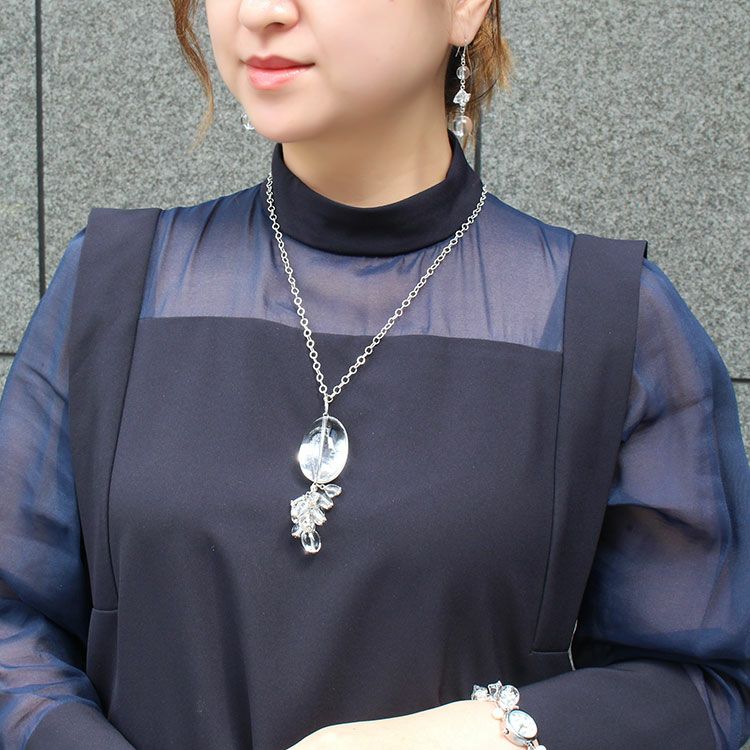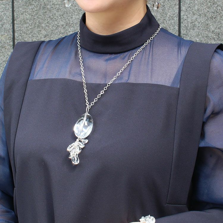 クォーツ&クリスタルガラス3連ロングネックレス/1150615