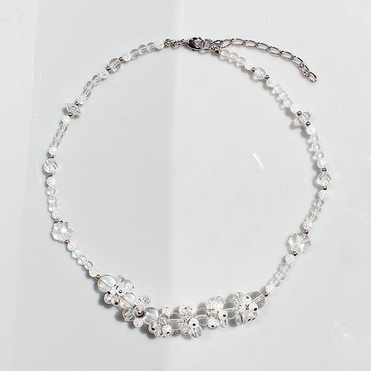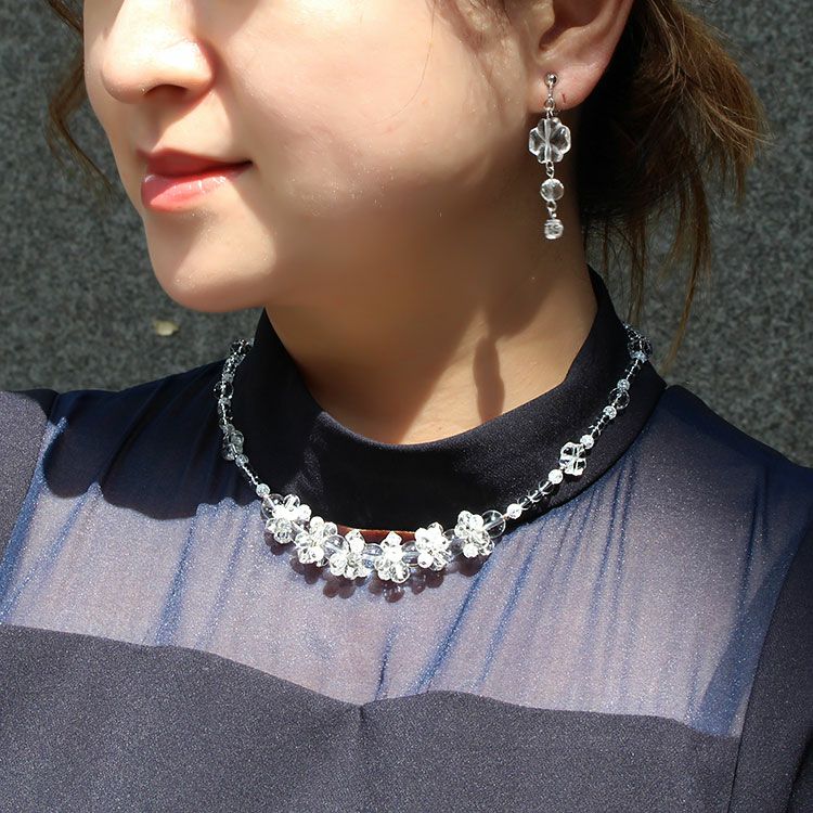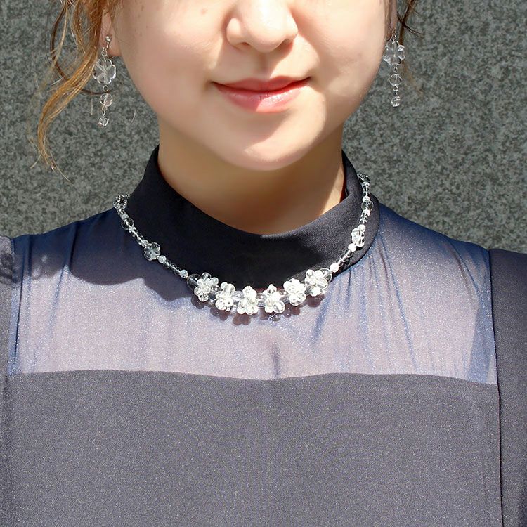日本製クォーツクローバー×フラワーモチーフショートネックレス