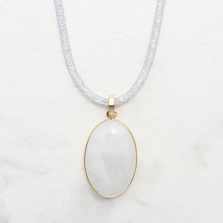 オーバルシェイプジェムストーンメッシュコードネックレス