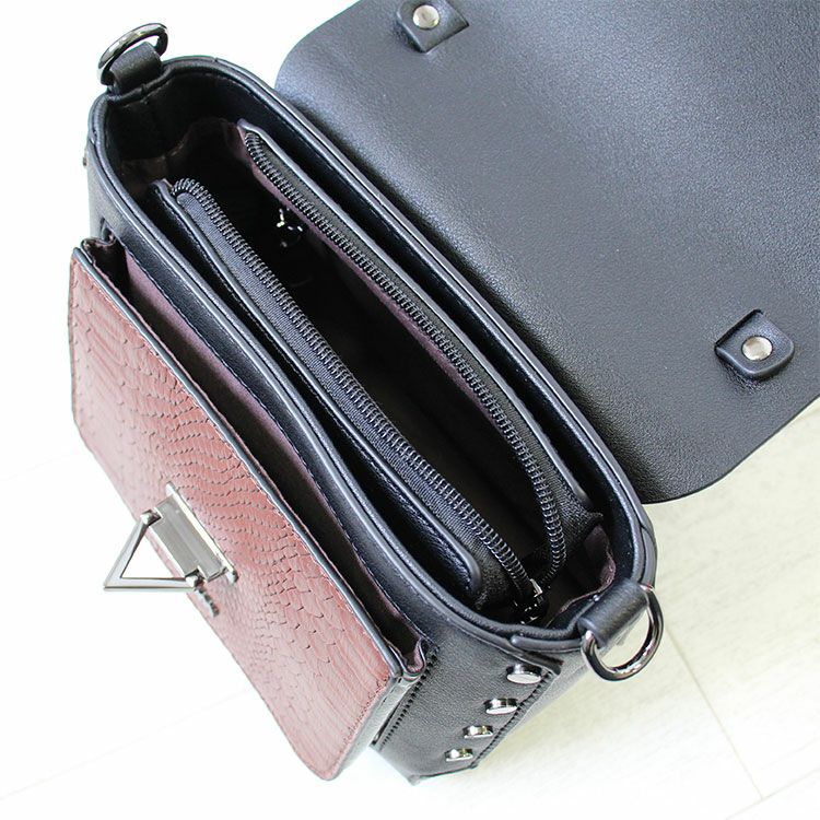 イタリア製/2Way スネイクハンドル型押しヴィーガンレザーバッグ/8021006-