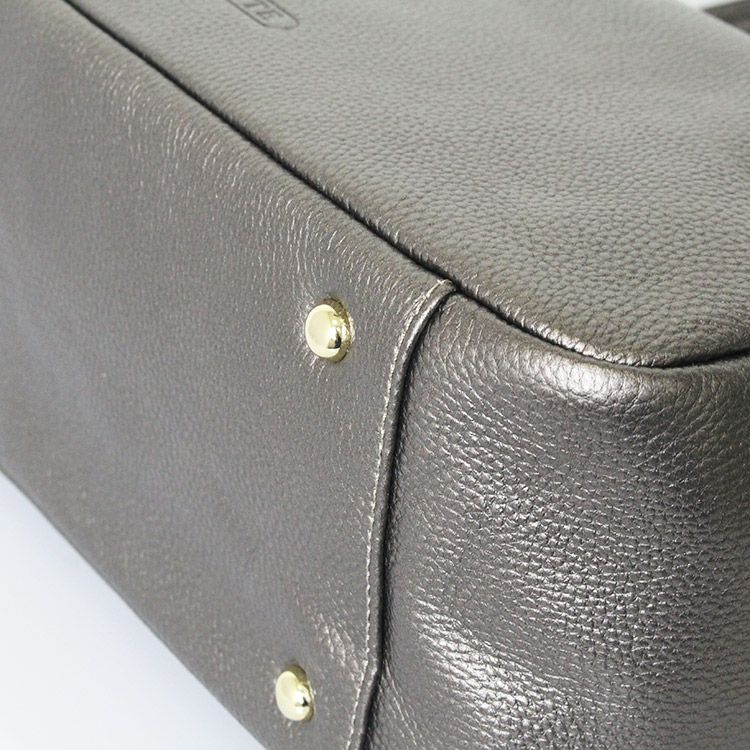 ショルダーベルト付きメタルハンドルエコファーハンドバッグ