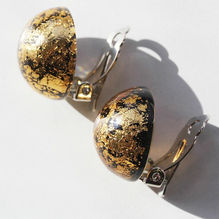 【ZSiSKA】金箔レジンボタンイヤリング/3161130-**